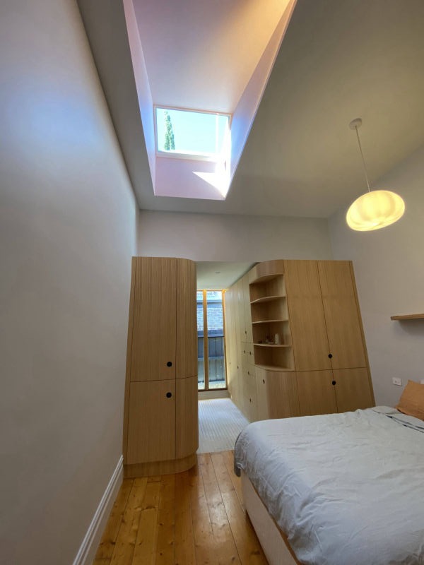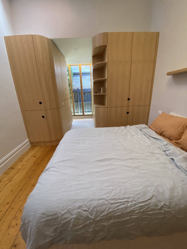 Location: Mountfield St, BrunswickCompleted: October 2020Description: We underpinned existing footings and extended master bedroom to include an architecturally designed walk in robe and ensuite with custom curved cabinetry.